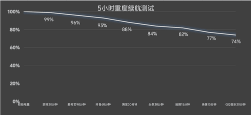 为了支撑游戏玩的更久、玩的更爽,iQOO15内置了7000mAh蓝海电池,依托新一代球形硅负极技术,电量储存能力较上一代直接提升50%,直观转化为设备更大电池容量+更长续航时间,经过中关村在线五小时重度续航测试,还能剩余74%的电量,就算干一整天游戏也不用担心电量问题。