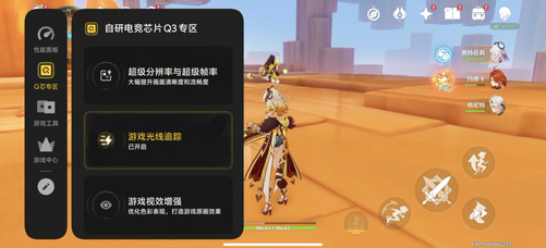 自研电竞芯片Q3搭载的光追核,为iQOO15赋予了全场景光线追踪能力。在原神中,未开启光追时,提瓦特大陆的光影总少了几分活气,水面是一片模糊的反光,角色武器的光泽也显得生硬;而开启iQOO15的光追功能后,画面仿佛瞬间被激活。这种真实感并非来自一层滤镜,而是让虚拟世界遵循了现实中的光影规律,跑图时随手一截,画面都能直接当壁纸。