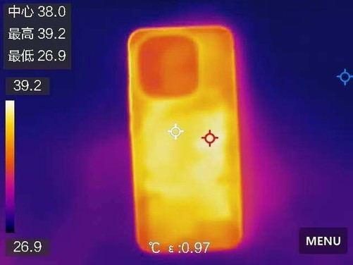 为了保障游戏的表现更稳定,iQOO15搭载了大面积单层8KVC均热板,相比iQOO13散热面积提升14%,内部含2亿颗纳米级氧化石墨烯颗粒且VC最大解热功率提升5%。此外还配备双层超高导热石墨层,面积超14000mm²,原神30分钟后背板最高温度只有39.2°,即便是长时间游戏也不用担心发热掉帧问题。